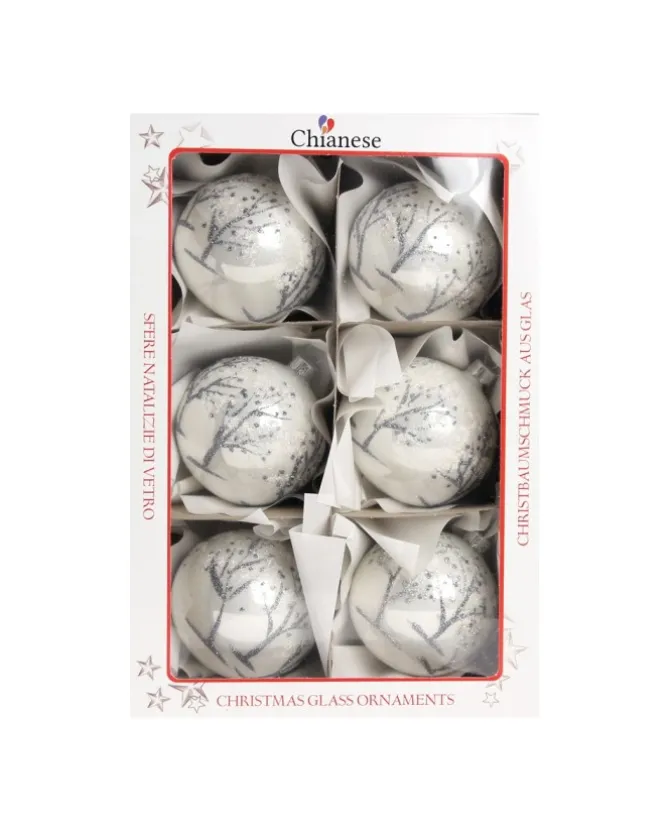 1Pz Pallina Di Vetro Decorata A Mano Bianco Lucido 80Mm