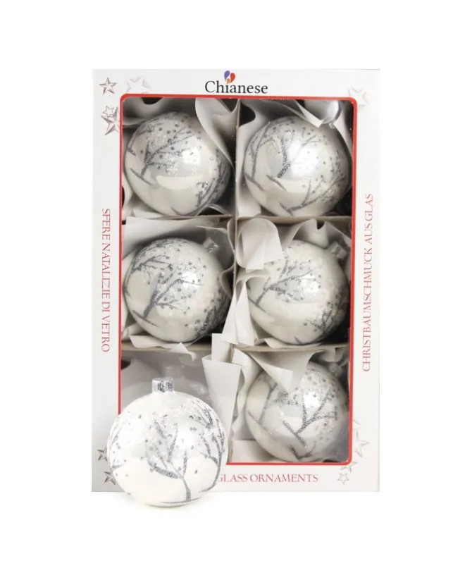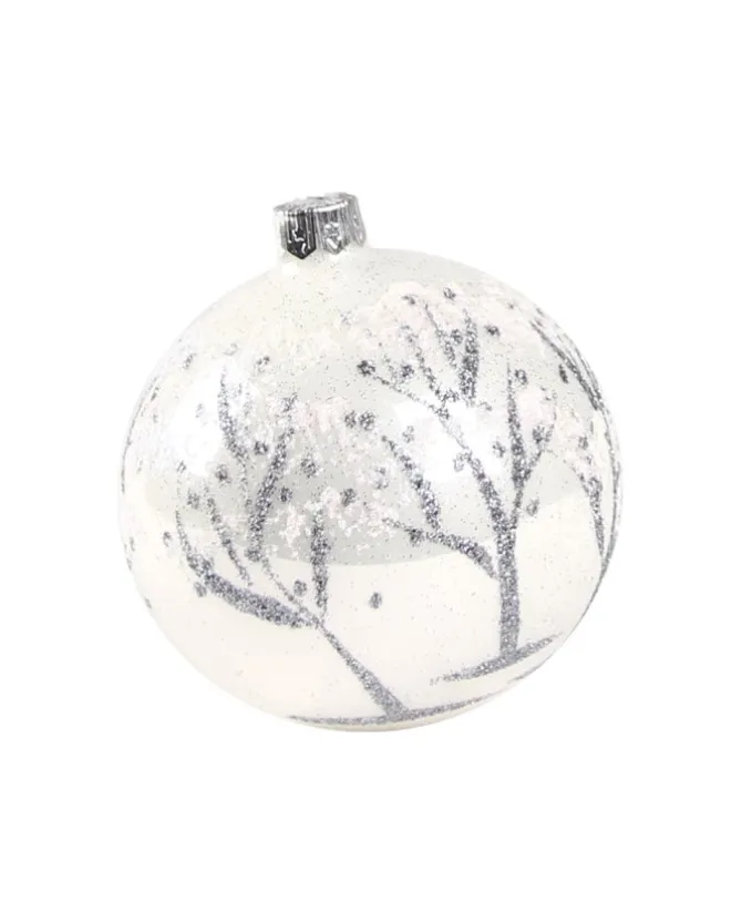 Colore: Biancosfera Di Vetro Decorata A Mano Bianco Lucido 80Mm Per Albero Di Natale
